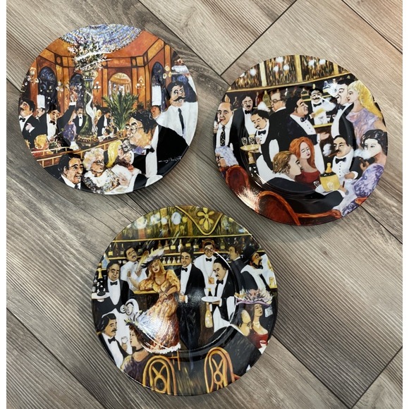 Santa Barbara Guy Buffet French scene Cocktail Dessert salad Plates set of 3