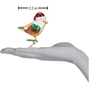 Birds are symbols of happiness and joy, so they are regarded as a necessity on the Christmas tree. They make beautiful and cheerful additions to any decor. This little bird ornament wears a cute Santa hat to add more holiday cheer to your tree.Hand crafted in age-old tradition with techniques that originated in the 1800s Molten glass is mouth-blown into finely carved moldsOrnaments are all hand-painted and glittered in a series of labor-intensive steps to achieve the beautiful creationsTraditionally designed, hand-crafted ornamentsThis is a brand new ornament from the Old World Christmas collection. All ornaments in the collection include a "story tag" on the hook.OWC 100