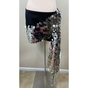 Santa Brands Sequin Embellished Draped Tail Black Mini Skirt Size Small