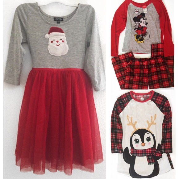 • features a precious Christmas tutu dress, cozy mickey mouse pajama set, and super cute penguin pj slip dress