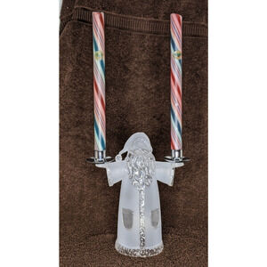 Santa Candle Holder Frosted and Clear AND Red Green Candles