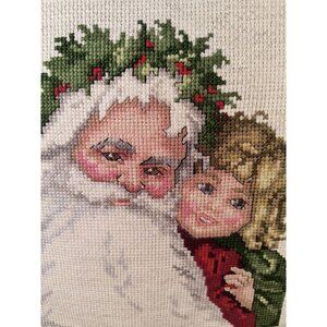 Santa & Child Cross-Stitch Red Velvet Pillow