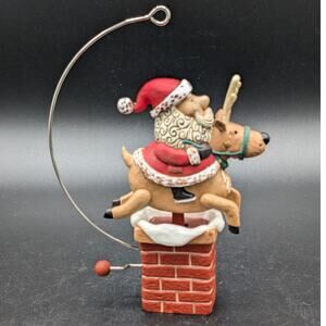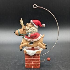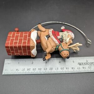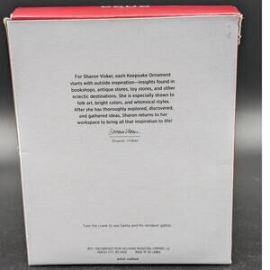 Hallmark Keepsake Ornament, Christmas 2022, Giddy Up, Santa! Designed by Sharon Visker. Works and legs move when you turn the crank. See photos for measurements. No chips or cracks. Original box. The box does have damage, see photos. Holiday, Festive, Cutesy styles.