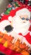 Celebrate the holidays with this festive Santa Christmas sweater. Features a colorful Santa design with red, black, white, and orange patterns.