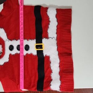 Stay cozy and festive this holiday season with this red cowl neck Santa sweater for women. Featuring a Santa design with black buttons and belt detail, eyelash white yarn, this sweater is perfect for spreading holiday cheer. Add this stylish sweater with scoop neck to your wardrobe for a fun and festive look. pre owned good condition see pics see pics for measurements