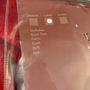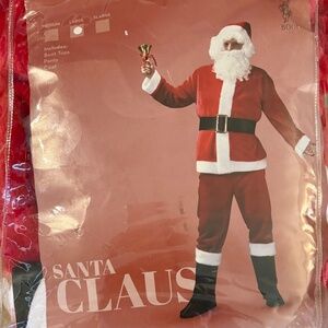 Santa Claus Adult Costume with Christmas Red Hat Coat Pants and Boot Tops in Size Large. Brand new in packaging.