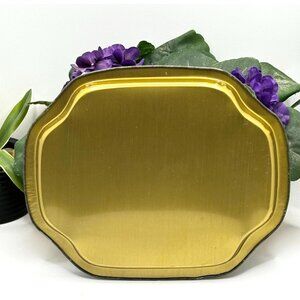 This metal tray features Santa Claus on a carousel horse with a green marble-like edge. It serves as a festive decorative piece.