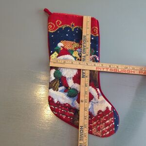 Santa Claus Chimney Needlepoint Christmas Stocking Red Velvet Wool Cotton