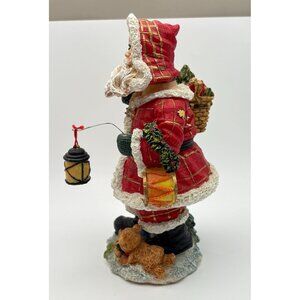 Santa Claus Christmas Figurine Bobble Lantern and Toy Basket Red Plaid Coat