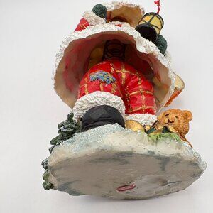 Bring festive cheer to your home with this vintage Santa Claus bobble figurine, masterfully crafted from resin and featuring exquisite painted details. Santa stands about 8.5 inches tall in a red plaid coat trimmed, holding a lantern and carrying a basket of toys, perfect for adding a touch of classic holiday spirit to your mantle, shelf, or Christmas display.