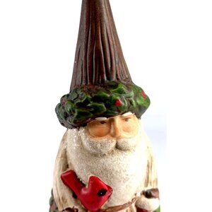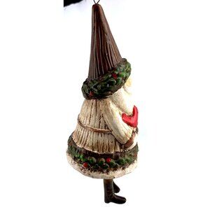 Santa Claus Holding Cardinal Bird Christmas Ornament Bell Dangling Legs 6" Porcelain Hand Painted