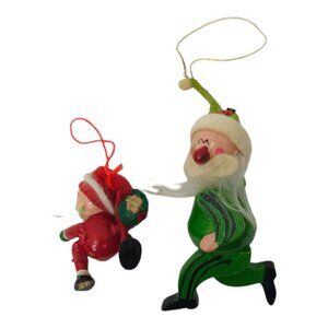 Santa Claus Christmas Ornaments Holiday Wooden Vintage MCM Jog Suit Kris Kringle