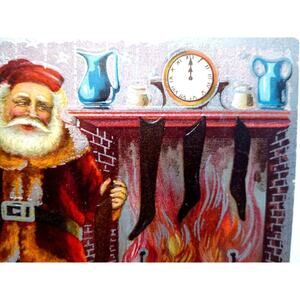Santa Claus Christmas Postcard Saint Nick Holds Toy Auto Car By Fireplace 1910