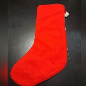 red & white Stocking with a cap, red nose, mustache, two button balls & a white heel & toe