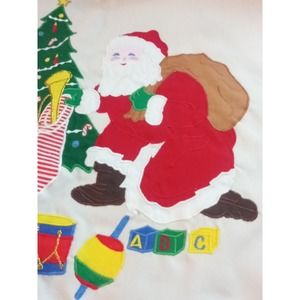 Vintage Santa Claus Christmas Tree Skirt Toy Soldier Stocking Train Teddy Bear Rocking Presents Horn Candles Santa Craft Holiday Decoration