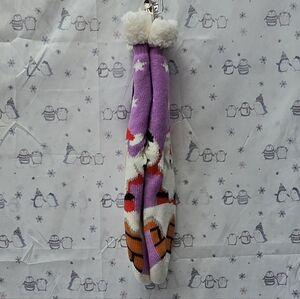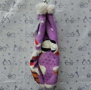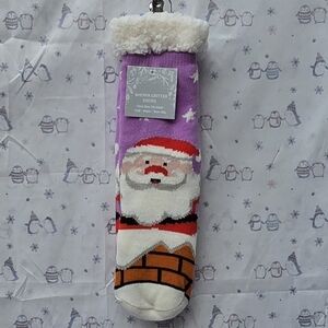 Santa Claus Coming Down A Chimney. Sherpa Lined Socks