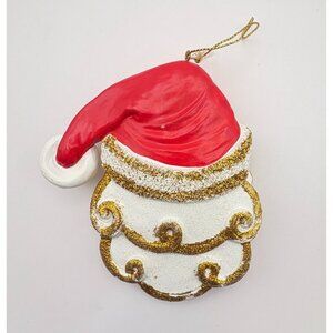 Santa Claus Face Christmas Tree Ornament with Glitter Accents & Red Hat