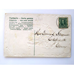 Posted with cancel. Antique original vintage post card. Has ink cancel marks on front, corner dings, and age wear. Stock #santa37.
