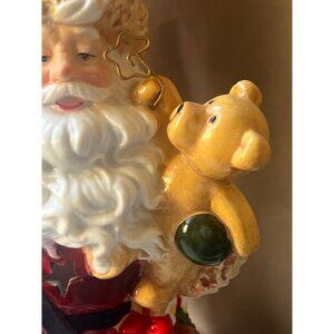 This Cherished Home Collection Santa Claus figurine features vibrant colors and LED glow-through designs. Ideal for adding festive charm to seasonal decorations.