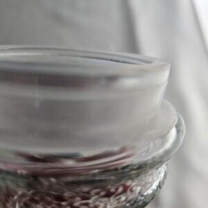 This intricately designed clear glass Santa Claus jar adds a timeless charm to holiday decor. It serves as a collectible piece or functional container.