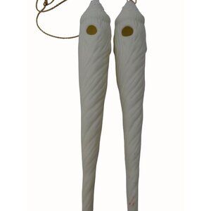Santa Claus Icicle Christmas Ornaments Ceramic White Set of 2