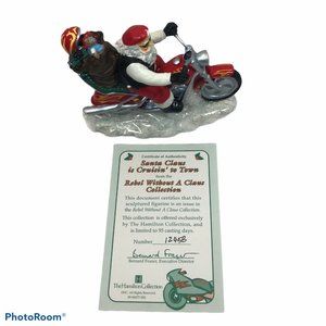 Santa Claus Is Cruisin' To Town from The Rebel Without A Claus Collection #0358B. Condition is New. From the Rebel Without a Claus Collection. The Hamilton Collection. Includes the correct certificate of authenticity. The picture is of one number. I didn’t take all the certificates out of the envelopes for each one. This item has been opened but never displayed due to the fact the plastic is still wrapped around the base. Measurements are 2” wide, 5.5” long and 3.5” high. Smoke free home. Please let me know if you have any questions. Thank you. 23