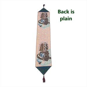 This festive, colorful Christmas table runner adds elegance to your dining table. Featuring a Santa Claus and Merry Christmas theme, this rectangular table runner is made of fabric and measures 13x70 inches. The design with winter elements like a smiling Santa, snow, a cozy village, and holly bushes creates a traditional yet modern style that captures the spirit of Christmas and the holiday season.