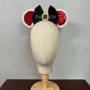 These festive Disney-inspired Minnie ears feature sparkly red sequins with soft white trim, perfectly topped with a classic black fabric bow and a shiny gold buckle for a fun “Santa’s belt” look. Whether you're spreading cheer at the parks or adding a bit of jolly style to your winter outfit, these ears are sure to make your season merry and bright! 🎄💖