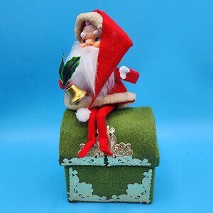 Bring nostalgic holiday charm to your décor with this delightful vintage Santa Claus roof-top box ornament. Featuring a classic blowmold head, soft felt accents, and festive details, this piece doubles as both a decoration and a small storage box for treats or trinkets.