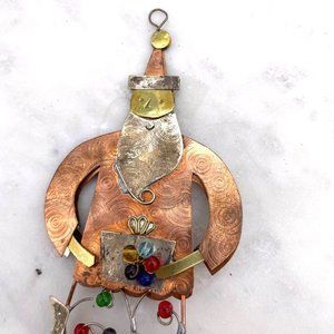Santa Claus Ornament Mixed Metal Beaded Soldered Christmas Double Sided