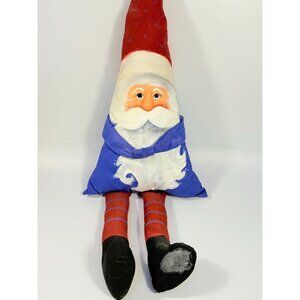 Santa Claus Pillow Doll With Red Hat & Blue Outfit | Vintage Hand Painted Christ