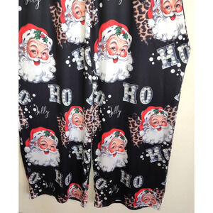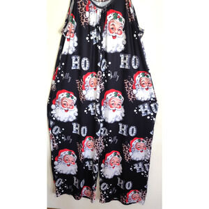 Previously Owned super cute Santa Claus Romper. Unbranded. Just pull on to wear. Lightweight and stretchy, has side pockets. Black in color with Santa Claus print. And Santa has a cute face.