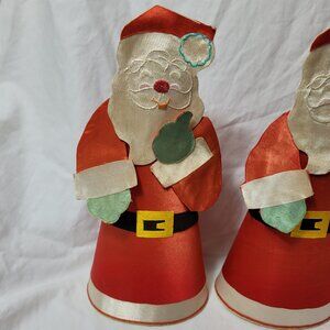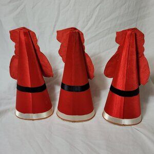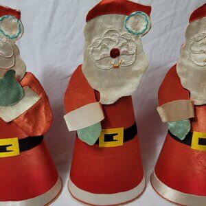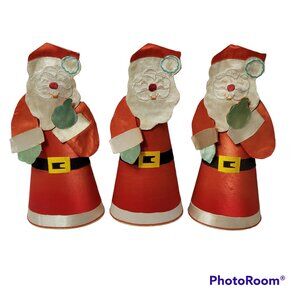 Vintage Santa Tree Topper Table Mantle Decoration Set of 3 Cardboard Sateen 9.75 in