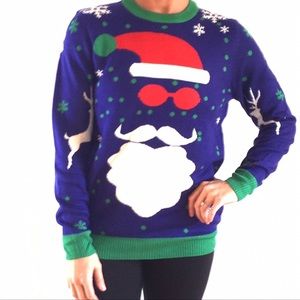 Santa Claus Ugly Christmas Sweater perfect for any holiday party or festive occasion. You'll love the fit and feel of this 100% acrylic sweater. Unisex Sizes- true to size. Visit closet to view all our Ugly Christmas Sweaters! Order today!