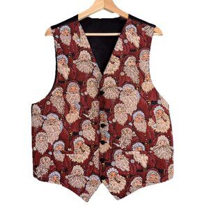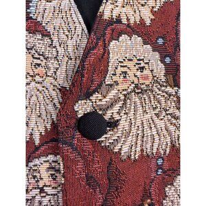 This Santa Claus Vest is a festive holiday piece perfect for the Christmas season. Made from a woven tapestry material with a Santa Claus design, this sleeveless vest features a button closure and is adorned with accents of the character Santa Claus. The multicolor design in cream and red hues gives it a vintage feel, making it a unique and stylish addition to your winter or fall wardrobe. Ideal for various occasions such as travel, parties, or casual wear, this vest is sure to spread some holiday cheer wherever you go.
