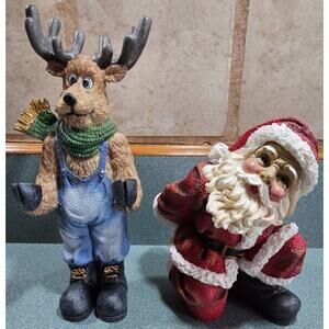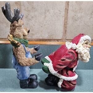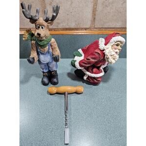 Santa Claus Wine Bottle Holder With Reindeer Corkscrew Opener Ceramic/Resin