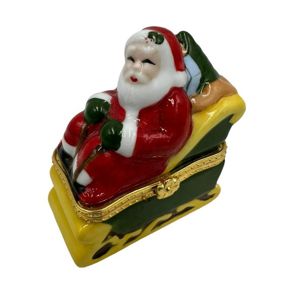 Santa Clause Trinket Box Porcelain Santa in Sleigh Hinged Christmas Box