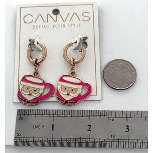 Santa Coffee Mug Dangle Earrings By Canvas Gold-Tone Red Enamel Festive Holiday. Quarter and ruler to show size only. Please check out my other items for combined shipping. Thank you
