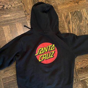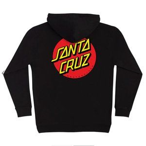 "Stand out and stay warm in the latest hoodies and apparel from Santa Cruz Skateboards. The Classic Dot men's heavyweight fleece hooded pullover sweatshirt features small front and large back Santa Cruz Classic Dot logo prints in soft hand ink. Fabric weight and thickness may vary by color. Select color and click the "Details" tab to see exact weight by colorway. Santa Cruz has been manufacturing the best skateboards and apparel since 1973. Innovative skateboards and artwork from the beginning 'til the end of time."