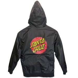 Santa Cruz Kids L Windbreaker Zip-Up Hoodie Black Polyester Skateboarding Logo