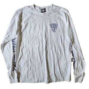 Santa Cruz Original Boardwalk Long Sleeve Men White Tee Size X-Large