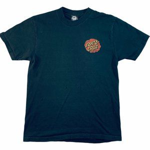 Great looking Santa Cruz skate board 2000s vintage tee. Rose logo design small on left front chest and large on back of tee. No size tag but fits like a men's small. Measurements are below. Shirt is in good condition with some signs of wear, two pin holes on front of shirt, shown with a quarter for scale.