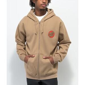 Rep iconic skate style with this Santa Cruz Skateboards Zip-Up Hoodie, Unisex Adult size S in tan. Features the legendary Classic Dot logo, a full zip front, and kangaroo pockets—a perfect everyday layer for skaters, streetwear fans, or lovers of West Coast cool.