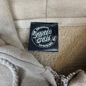 Santa Cruz Skateboards Hoodie Unisex Adult Size Small – Tan, Cotton Blend Fleece, Full Zip-Up Front, Classic Red Dot Logo on Chest and Back, Long Sleeves with Ribbed Cuffs and Hem, Drawstring Hood, Split Kangaroo Pockets, Casual Streetwear Style, Comfortable and Warm, Perfect for Skating, Layering, or Everyday Urban Wear.