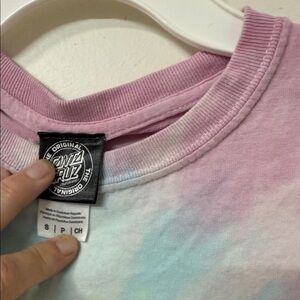 Fun tie-dye design with Santa Cruz logo. Perfect for casual wear.
