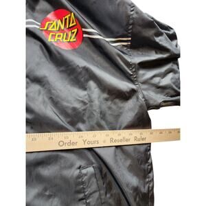 Santa Cruz Skateboards Windbreaker Mens Large Black Jacket Full Zip Hooded Polyester Reflective Stripe Logo Streetwear Layering Y2K Grunge