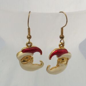 Santa Dangle Earrings With French Hooks and Gold Toned Background for Christmas