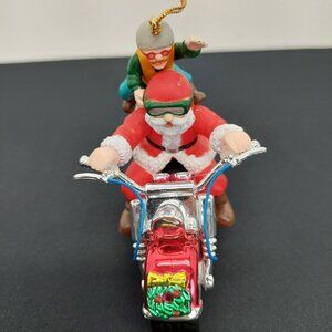 Santa & Elf Riding Motorcycle Christmas Ornament Chopper Hog Santa's Best 1995
