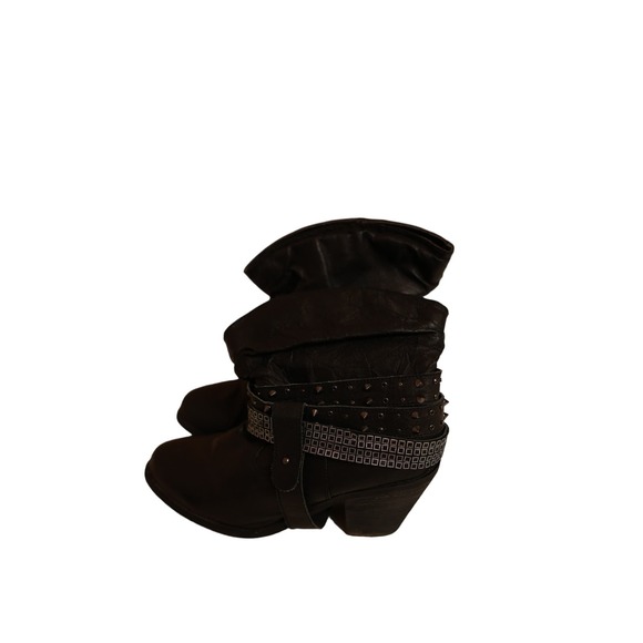 Santa Fe Boot Company black heeled booties western silver studded sz 10
