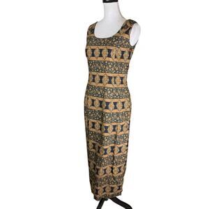 Santa Fe By Jim Tremblay Vintage Brown Gold Medallions Sleeveless Midi Dress